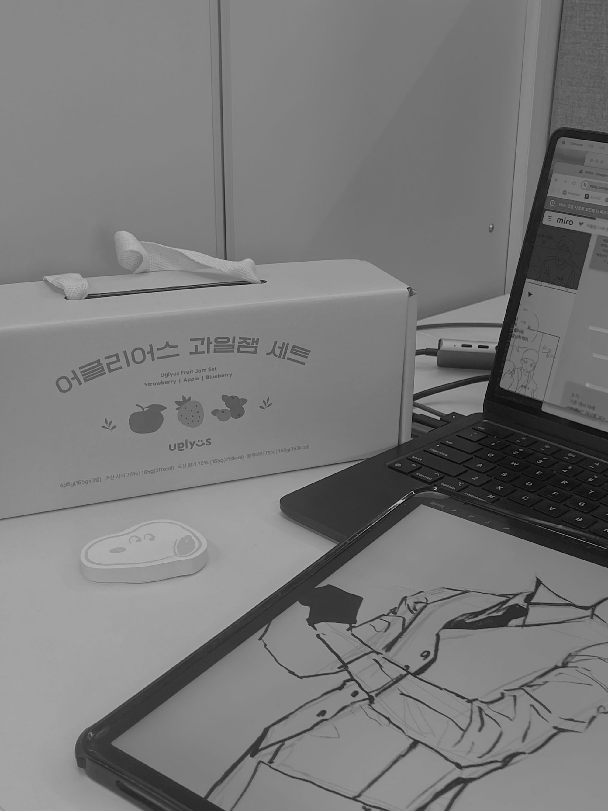 건물에서 하는 팝업이 있다. 팀원 분들이 럭드를 해보자고 권하셨는데 당첨되어서 받아온 잼 set (딸,사,블 맛임)