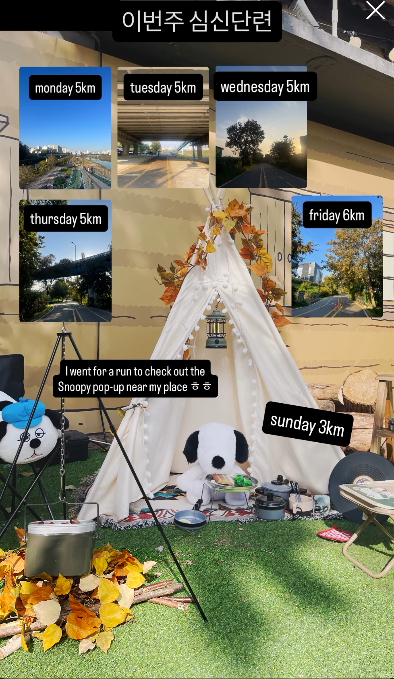 11월3일주의 러닝기록과 함께. 오늘 겟한 피너츠 뱃지는 가방에 달아줄 생각이다.